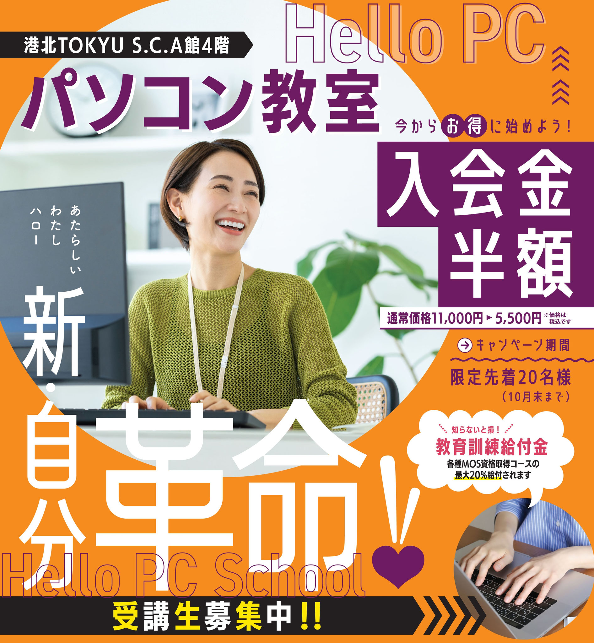 港北TOKYU.S.C. A館4階にある「個別学習」で学べるパソコン教室です。